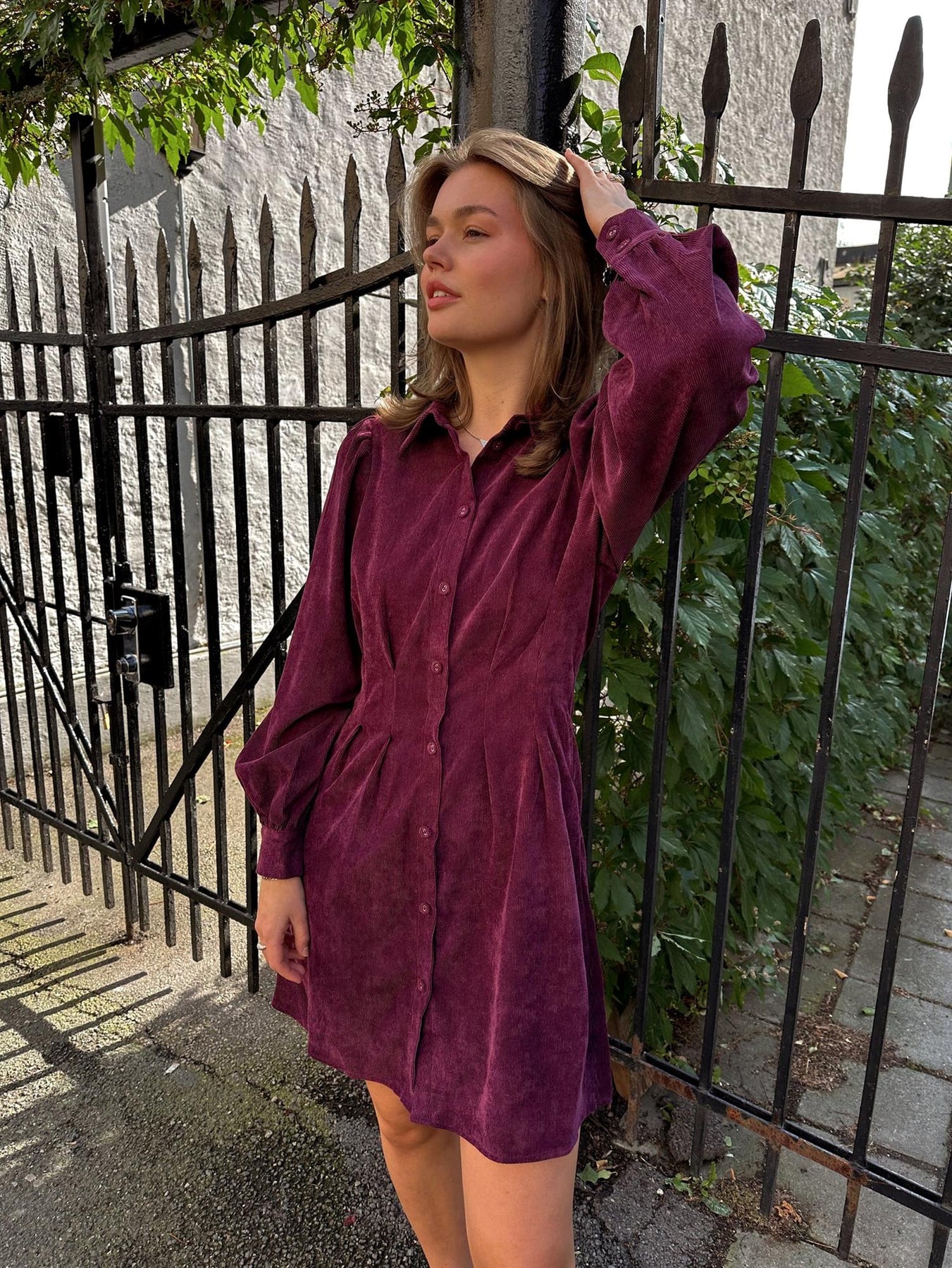 Vicordu Skjortekjole er en tidløs kjole laget i myk kordfløyel med en elegant struktur. Kjolen har klassiske skjortedetaljer som krage, knapper i mansjettene og lange ermer. Den normale passformen gjør den både behagelig og flatterende, perfekt til både hverdags og mer pyntede anledninger.