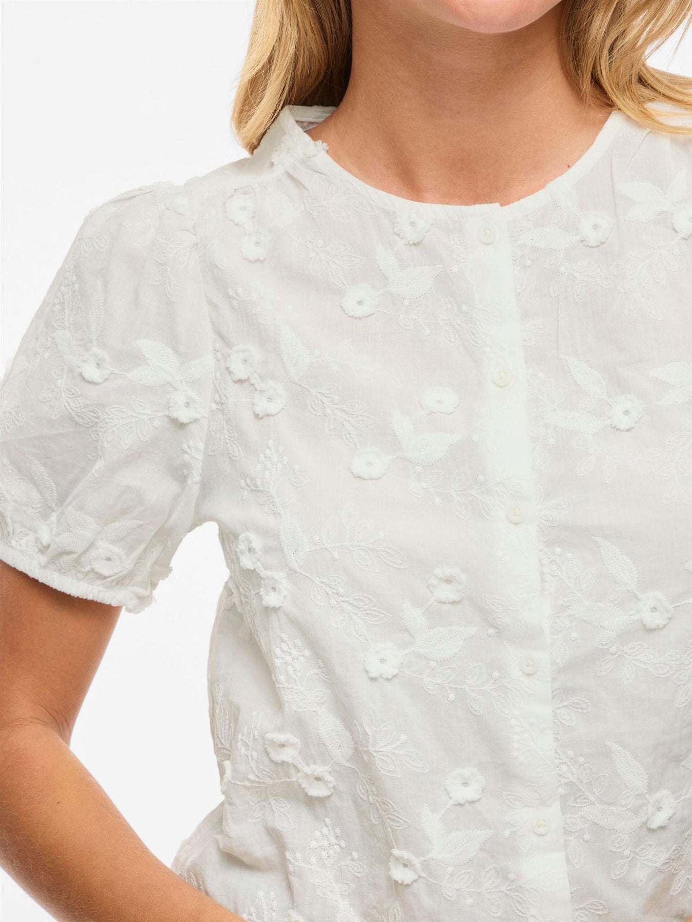 • Detaljert, kortermet topp • Rund hals • Knappelukking foran • Elastiske ermelinninger • Normal passform • Lengde: 62 cm i str. 38 • Ermelengde: 25 cm i str. 38