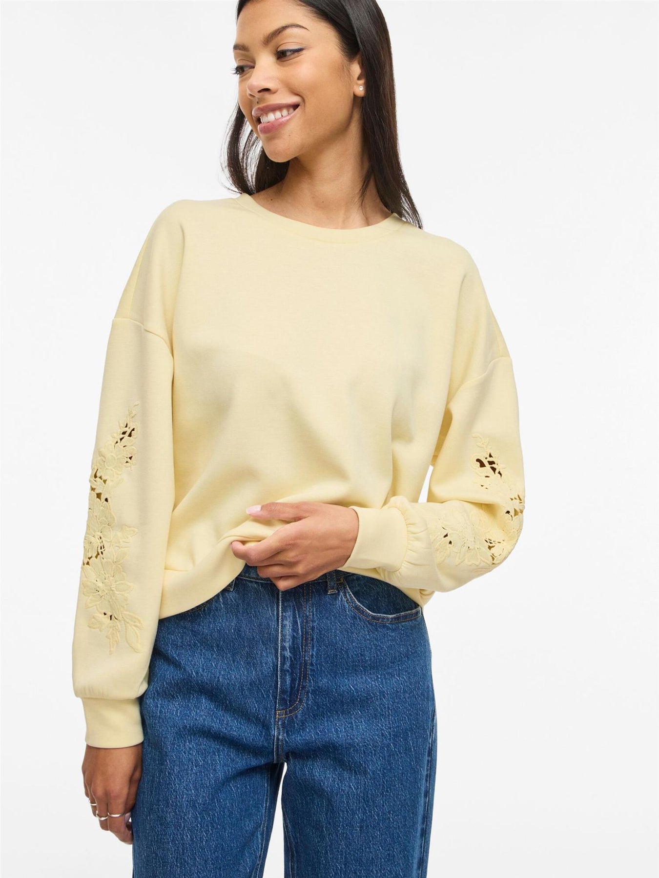 • Detaljert sweatshirt • Rund hals • Lave skuldre • Mykt stoff • Normal passform • Lengde: 60 cm i str M • Ermelengde: 64 cm i str. M